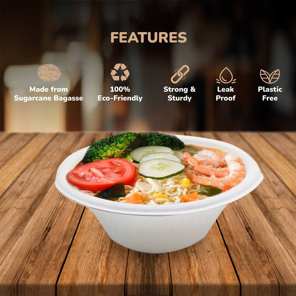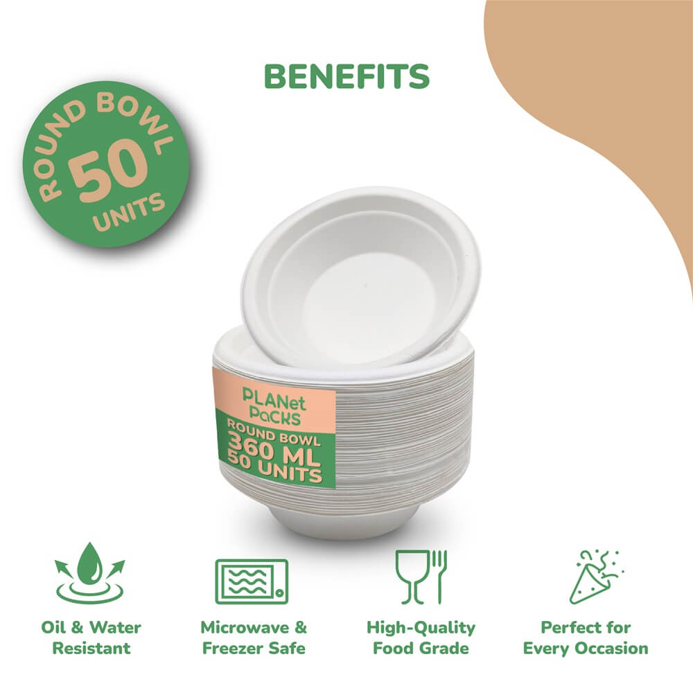 Our Round Bagasse Bowls are a sustainable and eco-conscious choice for serving soups, snacks, desserts, and more. Made from sugarcane residue, they are 100% compostable, plastic-free, and leave zero environmental impact. These bowls are oil and water-resistant, ensuring no leaks even with hot or liquid-based foods. Safe for use in the microwave and freezer, they offer excellent durability and versatility. Perfect for everyday meals, social gatherings, and festive occasions, they combine functionality with planet-friendly design. Choose these stylish and sturdy bowls to serve with care—for both your guests and the environment.