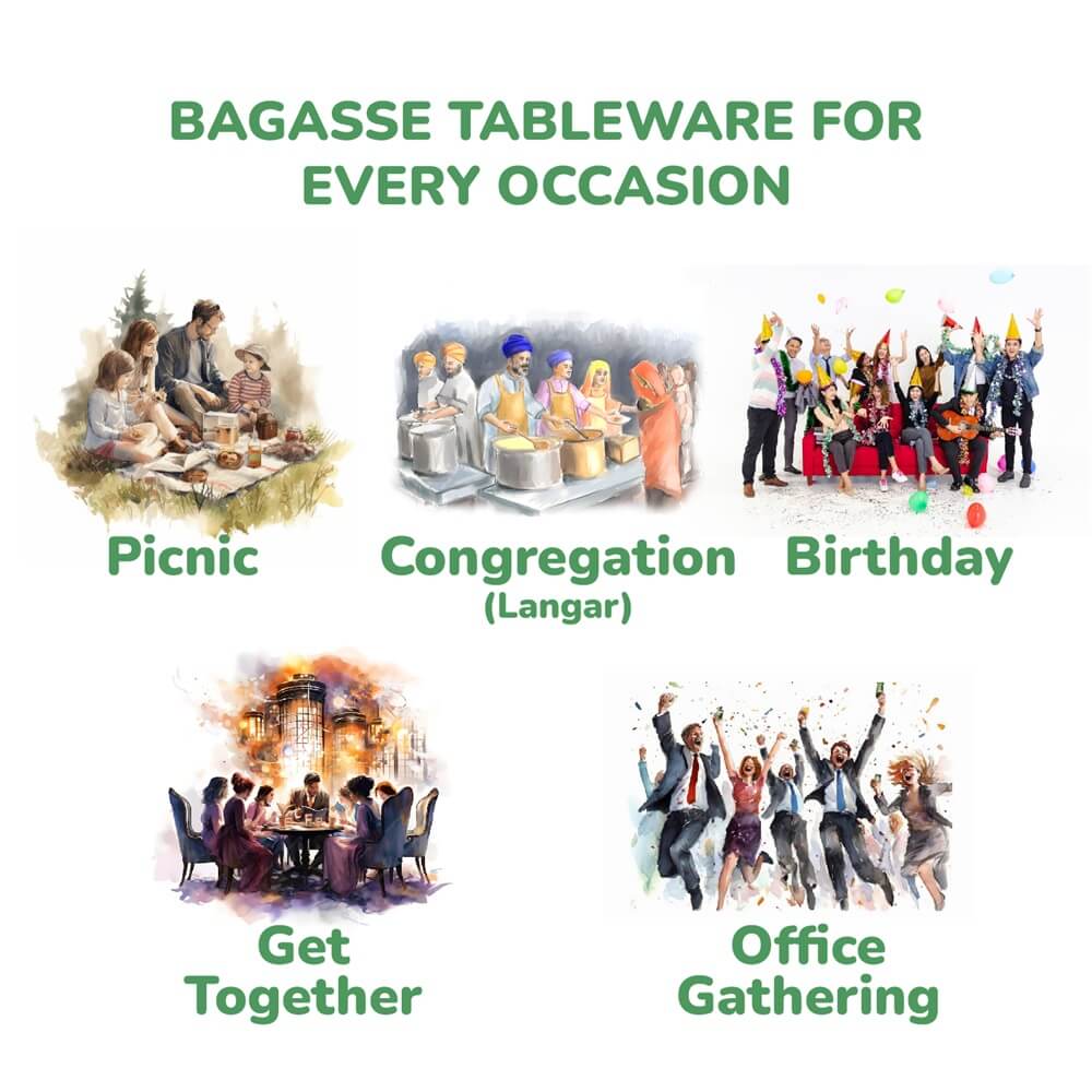 Our Bagasse Round Plates, available in multiple sizes, are a sustainable and eco-conscious alternative to plastic and paper disposables. Made from sugarcane waste, they are 100% compostable, plastic-free, and leave zero environmental impact. These plates are oil and water-resistant, ensuring no leakage even with heavy or greasy meals. Safe for use in both microwave and freezer, they offer unmatched convenience and durability. Ideal for social gatherings, festive occasions, and everyday use, they blend functionality with planet-friendly living. Make the responsible switch with stylish, sturdy tableware that cares for the Earth.
