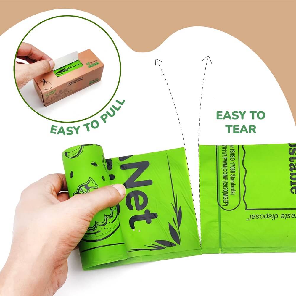 Made from the nature, and goes back to the nature. Planet Packs’ compostable garbage bags are 100% eco-friendly and made from plant extracts to ensure a sustainable and friendly waste-dispensable solution. Our bags offer superior quality with a higher weight-bearing capacity, making them ideal for carrying heavier loads without tearing. Completely leakproof, it prevents mess while maintaining durability.